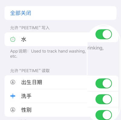 怎么开启健康权限【在手表上开启权限】 打开手表的"设置"应用,找到"健康" 点击"App"选项。 找到"PeeTime"选项。 确认所有开关处于打开状态。 【在手机上开启权限】 打开手机上的"设置"应用,找到"隐私与安全性" 点击"健康"选项。 找到"PeeTime"选项。 确认所有开关处于打开状态。